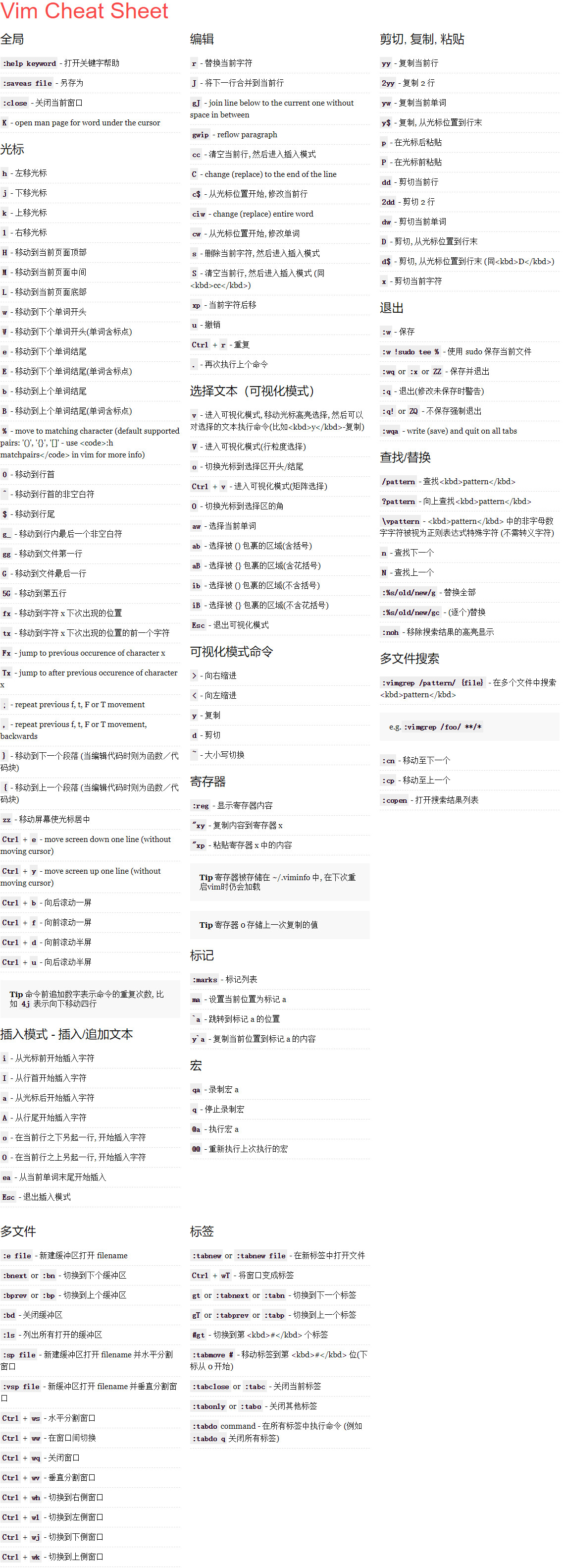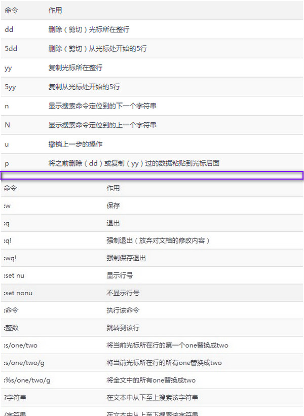 :q :q! :wq :x r filename #读文件到当前文件 w filename #当前文件写入另一个文件 !command#执行命令 r!command#读入命令的输出