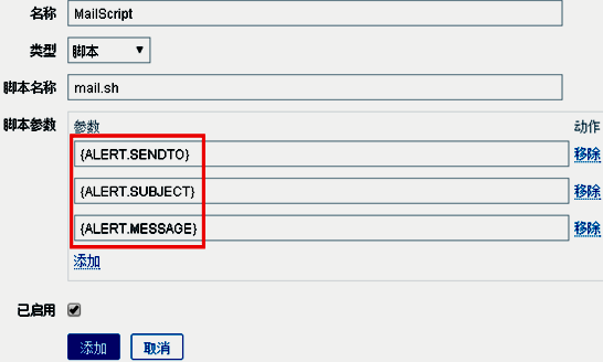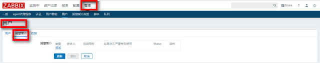 管理--> 用户--> 报警媒介中添加