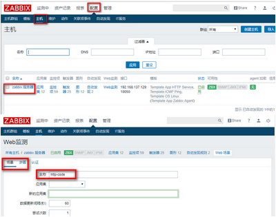 监控主机–> 创建应用集–> 创建web场景–>