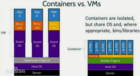 传统虚拟机技术是虚拟出一套硬件后,在其上运行一个完整操作系统,在该系统上再运行所需应用进程;而容器内的应用进程直接运行于宿主的内核,容器内没有自己的内核,而且也没有进行硬件虚拟。因此容器要比传统虚拟机更为轻便。