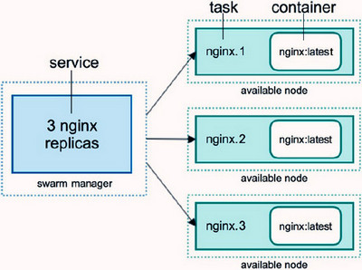 replicated services: 按照一定规则在各个工作节点上运行指定个数的任务global services: 每个工作节点上运行一个任务