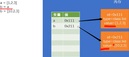 变量中存储的不是对象的值,而是对象的id(内存地址),使用变量时,实际上就是在通过对象id在查找对象;(3)变量中保存的对象,只有在为变量重新赋值时才会改变;